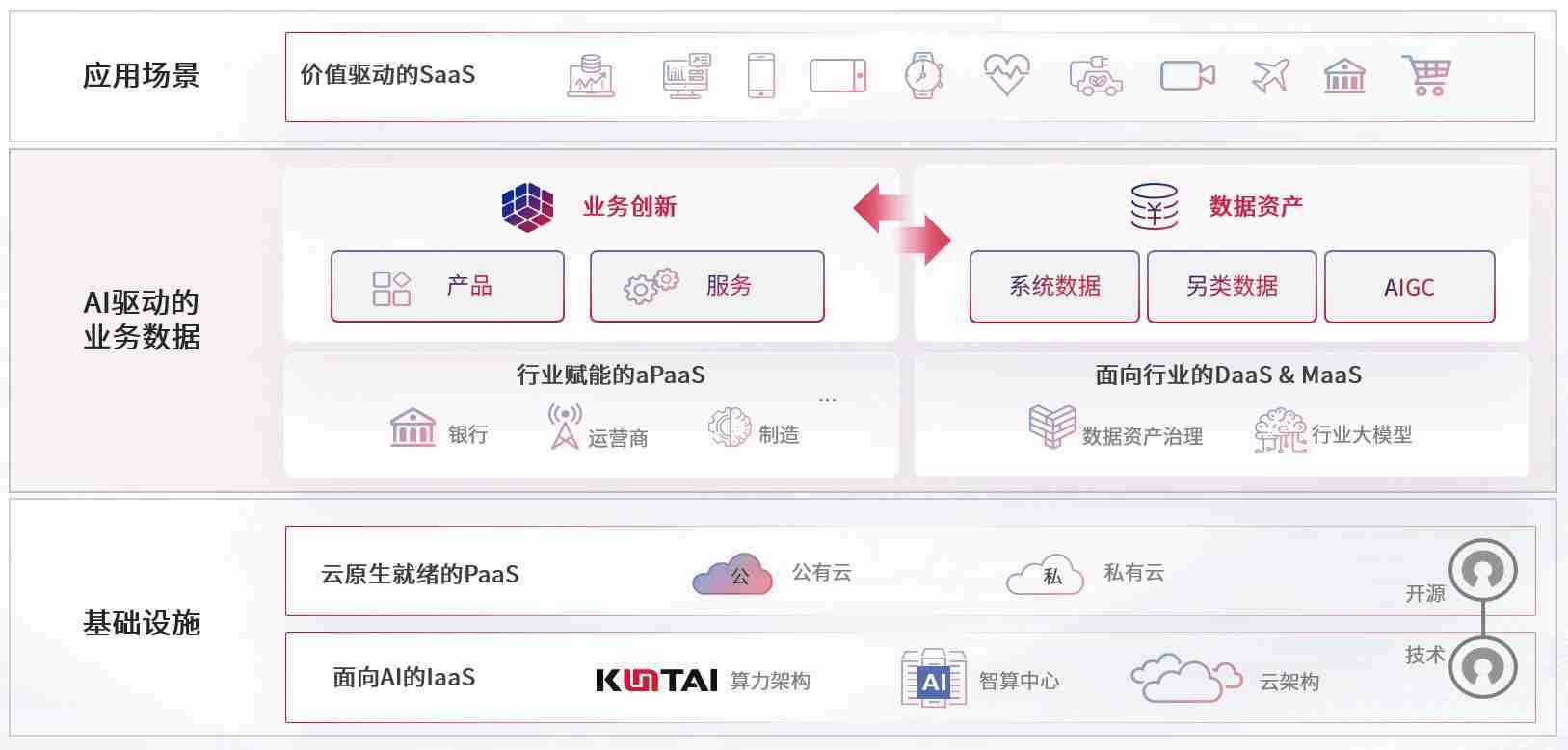 数字时代,,,围绕企业数字化转型的关键要素,,,97622娱乐电子游戏数码开创性的提出数云融合战略和技术体系框架,,着力在云原生、、、数字原生、、AI原生和信创产业上架构产品和服务能力,,,为处在不同数字化转型阶段的快消零售、、、、汽车、、、金融、、、、医疗、、、政企、、、、教育、、、、运营商等行业客户提供泛在的敏捷IT能力和融合的数据驱动能力,,构建跨界融合创新的数字业务场景和新业务模式,,,,助力企业级客户建立面向未来的核心能力和竞争优势,,全面推动社会的数字化、、智能化转型升级。。。
